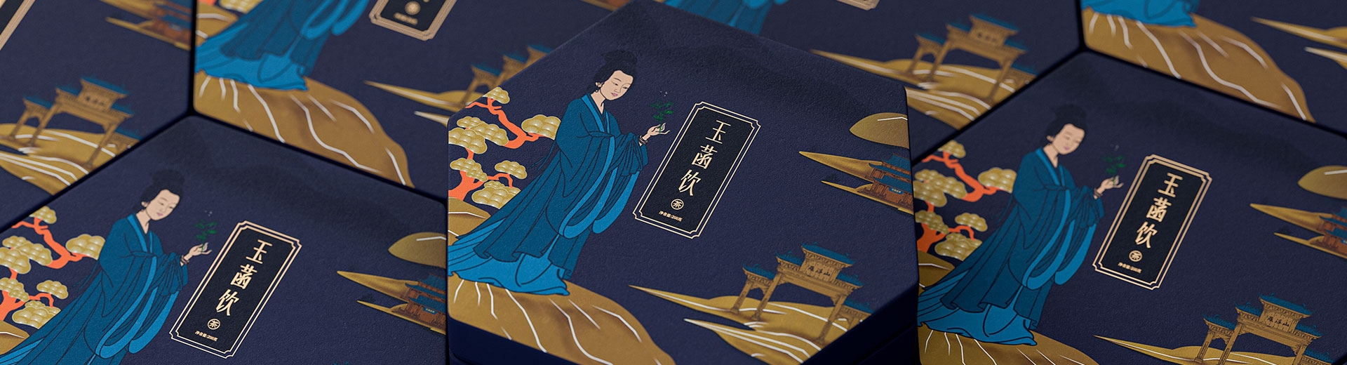 我們的整體品牌包裝以東莞羅浮山為創作背景,融合了羅浮山的道教圣地文化。主要符號是東晉時期的女神醫"鮑菇",她以經典的形象展現在包裝上。同時,我們將羅浮山的自然風情與現代文雅的表現手法相結合,創造出具有東方文化精髓的整體包裝。通過這樣的設計,我們傳遞了人們對純樸自然生活方式的向往。