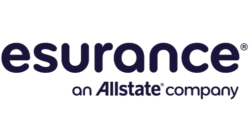 字標是公司的名稱——“Esurance Online Auto Insurance”。“Esurance”是小寫字母,包括第一個字母“e”是藍色的,而所有其他字母都是綠色的。下面寫著“在線汽車保險”。它是藍色的,字體較小。